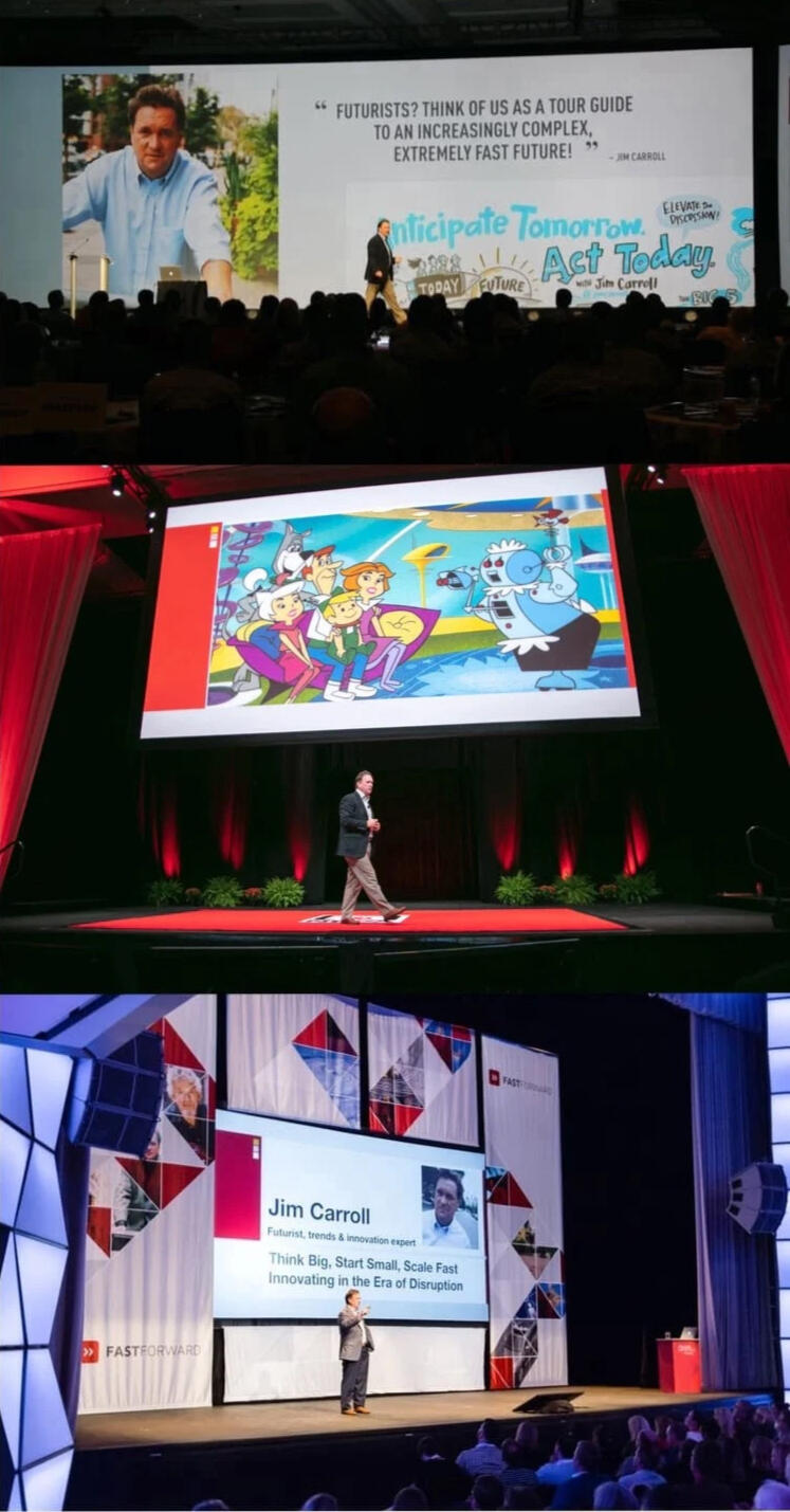 Many CEO/CxO’s find it necessary to bring their teams together for a corporate offsite event to discuss, strategize, and align to a faster, transformative future.A fast future demands that organizations pick up the pace when it comes to their strategies, actions, and innovation efforts.Jim is known for his presentations at these events which involve highly customized insight, extensive pre-event consultations, a global track record, and detailed industry experience!
